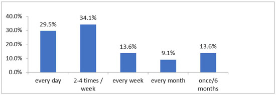 A total of 29.5% of all surgeons participating in the study accessed social networks daily (Figure 6).