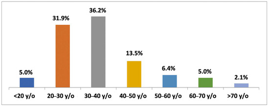 Our study included a total of 141 patients. The average age of these patients was 36.27 years, with a median of 33.00, a standard deviation of 12.212, a minimum of 18 years, and a maximum of 75 years (Figure 7).