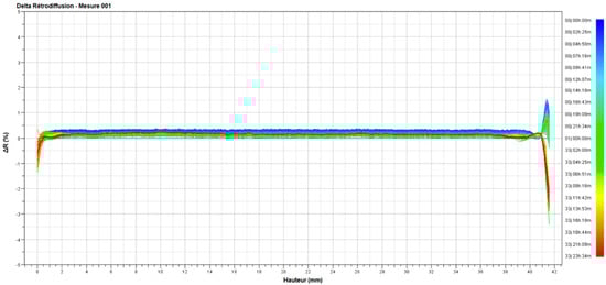 Each scan at a given height is subtracted from the previous scan at the same height; the whole is summed and divided by the total height of the sample. The result is therefore independent of the amount of product present in the cell.