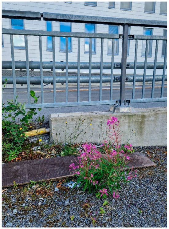 E. angustifolium plant in bloom growing by the side of a road in rubble. Photograph by Jaana Ailus, July 2024.