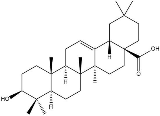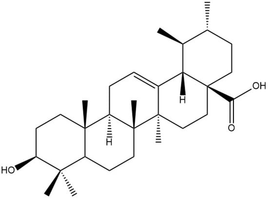 The triterpenes present in E. angustifolium are Ursolic acid and Oleanolic acid [24,25]. (See Supplementary Table S1 for a complete list of triterpenes present).