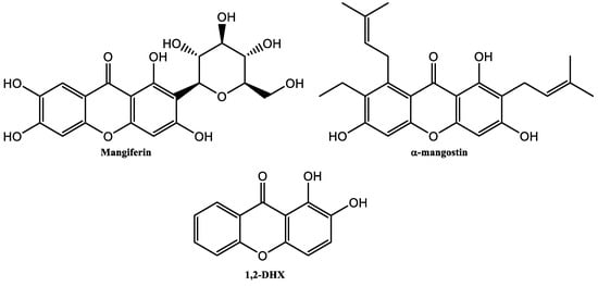 Chemical structure of natural xanthones found in cosmetic products and 1,2-DHX.