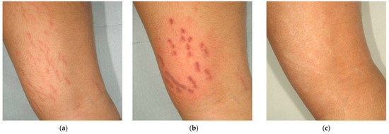 - McDaniel, D.H.; Ash, K.; Zukowski, M. Treatment of Stretch Marks with the 585-Nm Flashlamp-Pumped Pulsed Dye Laser. Dermatol. Surg. 1996, 22, 332–337. [Google Scholar] [CrossRef]