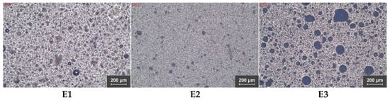 Microscopic images of the emulsifiers used: E1—self-emulsifying apricot kernel oil base; E2—soya lecithin; E3—natural emulsifier from olive oil—O/W type.