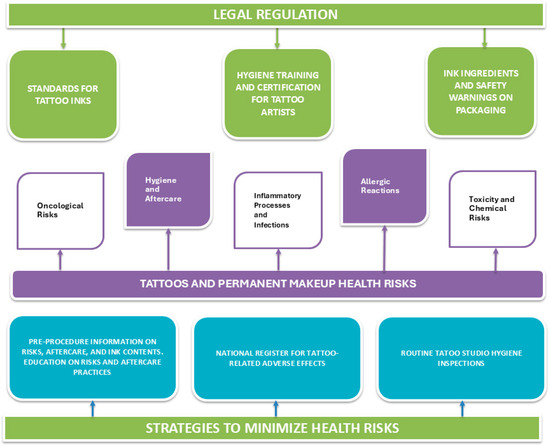 The prevalence of individuals with tattoos and permanent makeup continues to rise, and this trend is likely to persist [12,41,42]. The unclear identification of tattoo inks as cosmetic products or medicines, although they are injected into the skin without being authorized as sterile and injectable, is a serious issue [43].