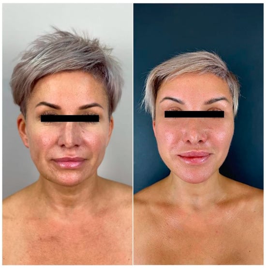 A 49-year-old female patient presented to the Department of Plastic Surgery at I.M. Sechenov First Moscow State Medical University with complaints about signs of facial aging. She expressed dissatisfaction with facial sagging, drooping of the eyebrows, excess skin on the upper and lower eyelids, and reduced lip volume, as well as an unsatisfactory volume of the breasts.