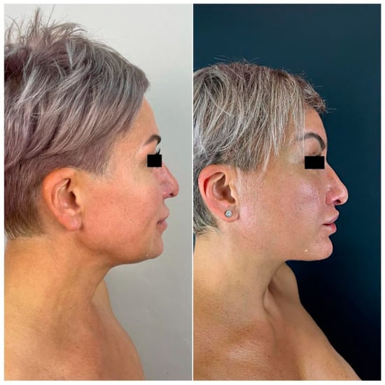 - Rogazhinskas, P.V.; Dobryakov, B.B.; Ermakovich, N.V.; Sidorov, S.V. Application of Nd:YAG laser in SMAS lifting of the mid and lower thirds of the face. Quest. Reconstr. Plast. Surg. 2022, 25, 52–59. [Google Scholar] [CrossRef]