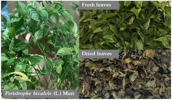 The leaves of P. bivalvis were collected from Mae Sai, Chiang Rai, Thailand, and identified by an expert. The voucher herbarium specimen (No. Wichayapreechar 002) was deposited at the School of Pharmaceutical Sciences, University of Phayao, Phayao, Thailand. The leaves were cleaned, dried at 50 °C in a hot air oven for 2 days, and then powdered using a blender.