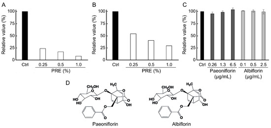 - Lee, B.; Shin, Y.W.; Bae, E.A.; Han, S.J.; Kim, J.S.; Kang, S.S.; Kim, D.H. Antiallergic effect of the root of Paeonia lactiflora and its constituents paeoniflorin and paeonol. Arch. Pharm. Res. 2008, 31, 445–450. [Google Scholar] [CrossRef]