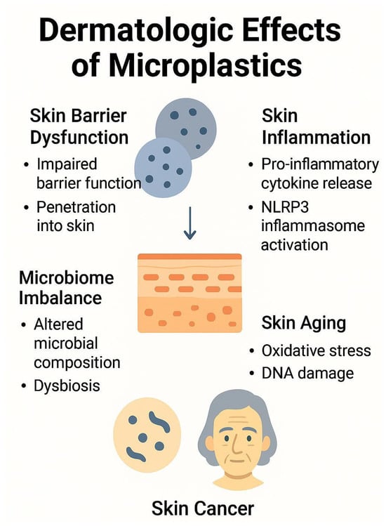 Figure 1). Although much of the current evidence stems from in vitro and animal studies, emerging data suggest that these particles may disrupt skin barrier function, provoke inflammatory responses, alter the skin microbiome, accelerate aging processes, and possibly contribute to carcinogenesis (