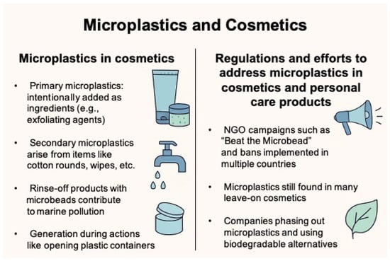- Guerranti, C.; Martellini, T.; Perra, G.; Scopetani, C.; Cincinelli, A. Microplastics in cosmetics: Environmental issues and needs for global bans. Environ. Toxicol. Pharmacol. 2019, 68, 75–79. [Google Scholar] [CrossRef]