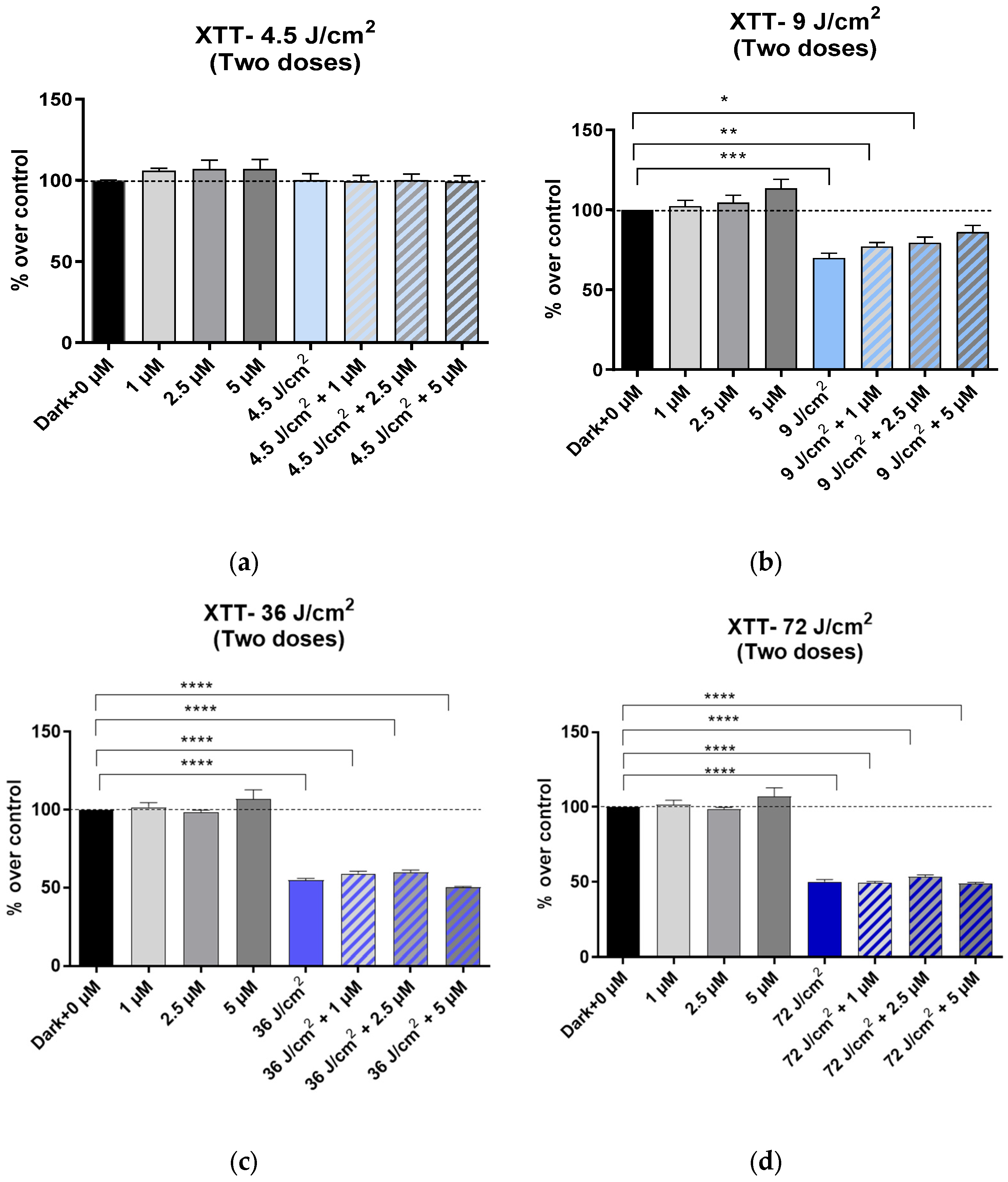 - Pérez González, L.A.; Martínez-Pascual, M.A.; Toledano-Macías, E.; Jara-Laguna, R.C.; Fernández-Guarino, M.; Hernández-Bule, M.L. Effect of Combination of Blue and Red Light with Terbinafine on Cell Viability and Reactive Oxygen Species in Human Keratinocytes: Potential Implications for Cutaneous Mycosis. Int. J. Mol. Sci. 2024, 25, 12145. [Google Scholar] [CrossRef]