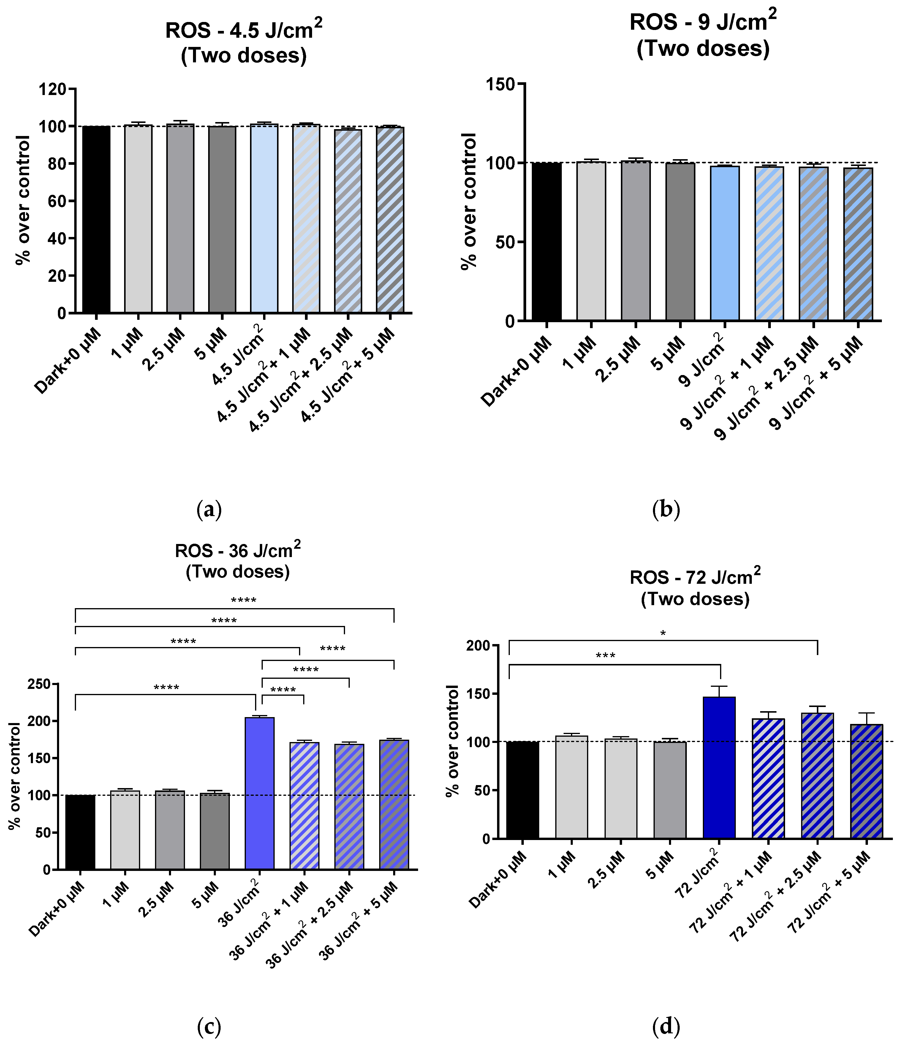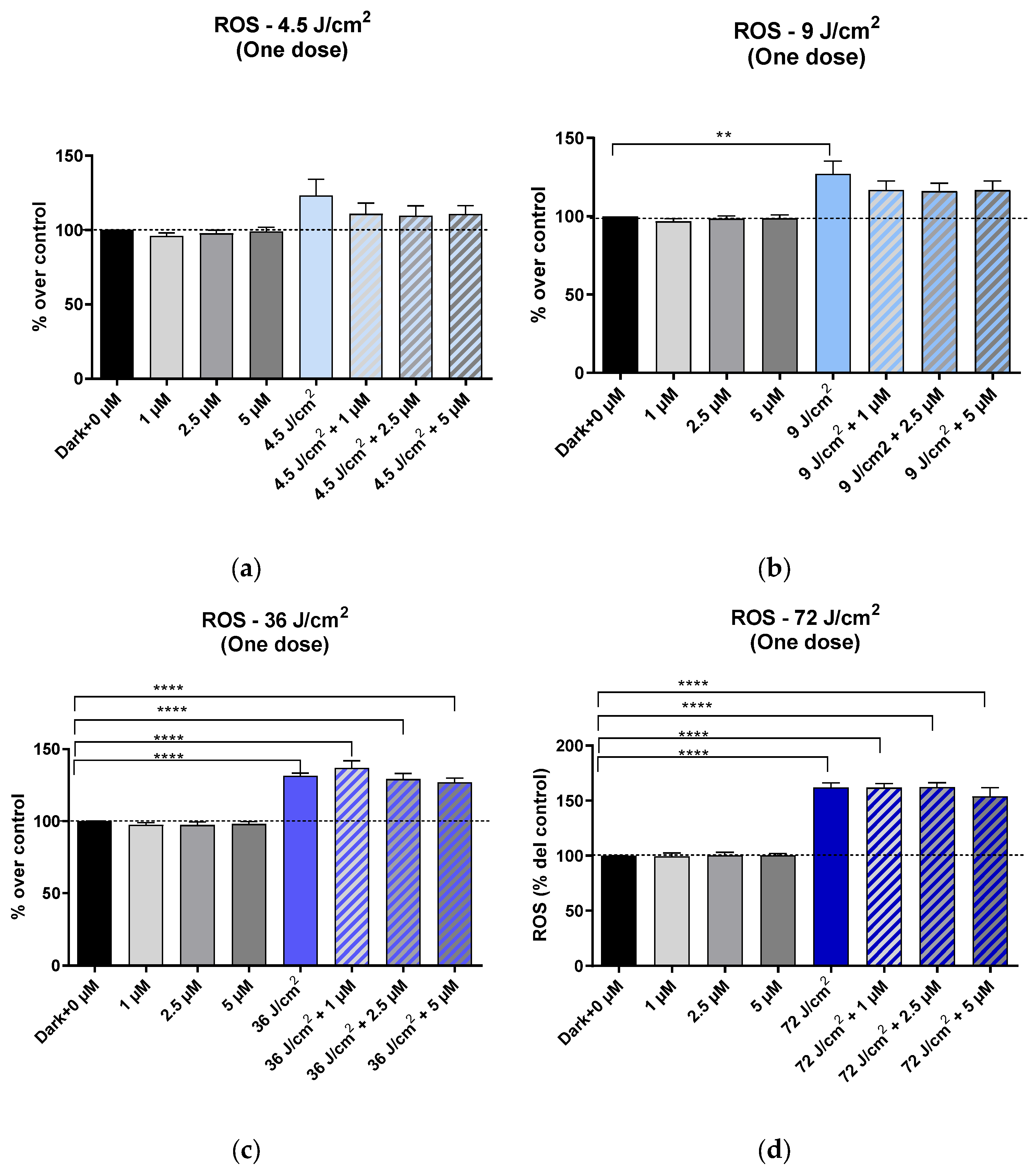 3.2.1. Effects on ROS Production After One Exposure to HEVL, with or Without HCQ