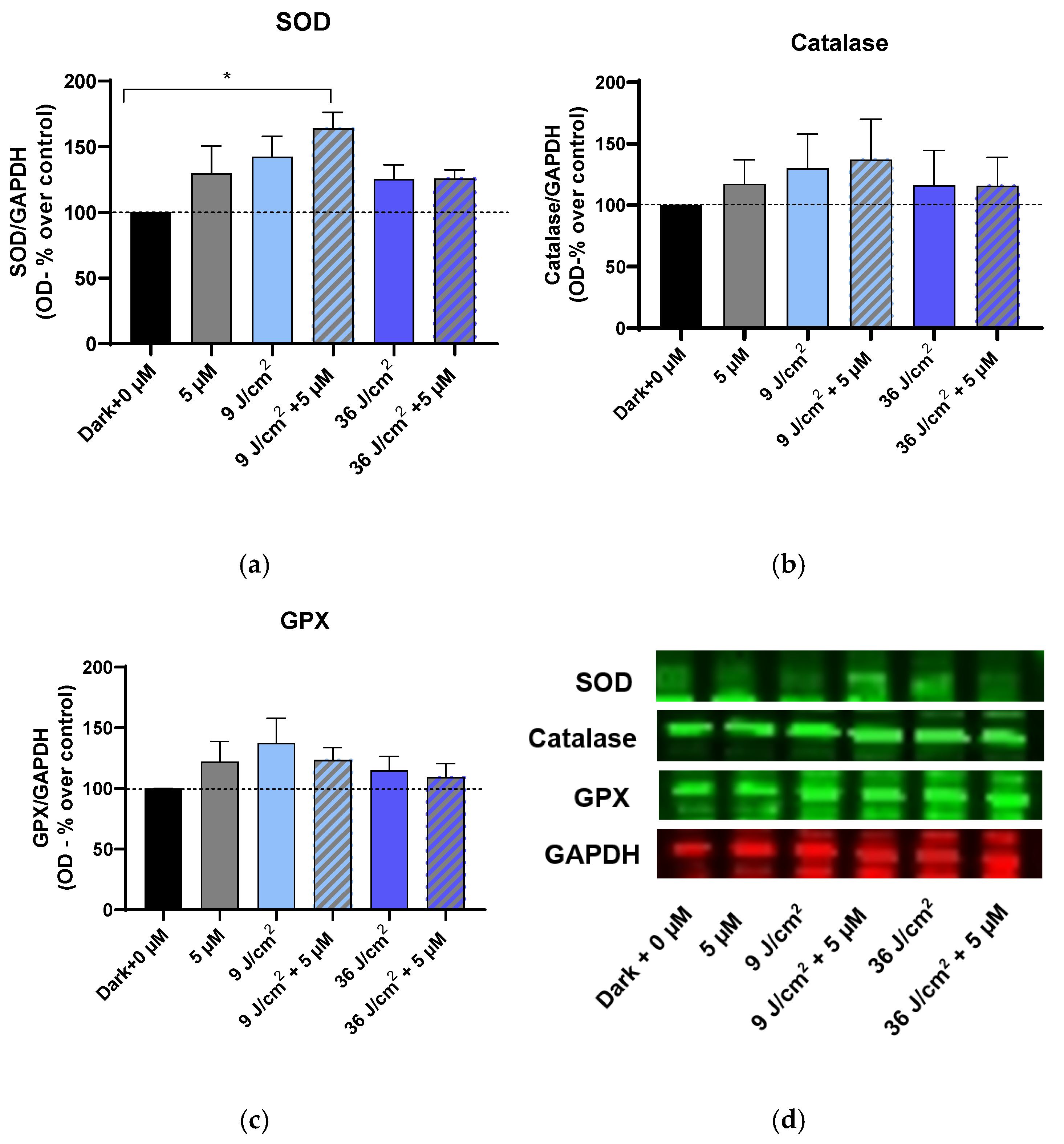 2.5. Immunoblotting for the Enzymes Superoxide Dismutase (SOD), Catalase, and Glutathione Peroxidase (GPX)