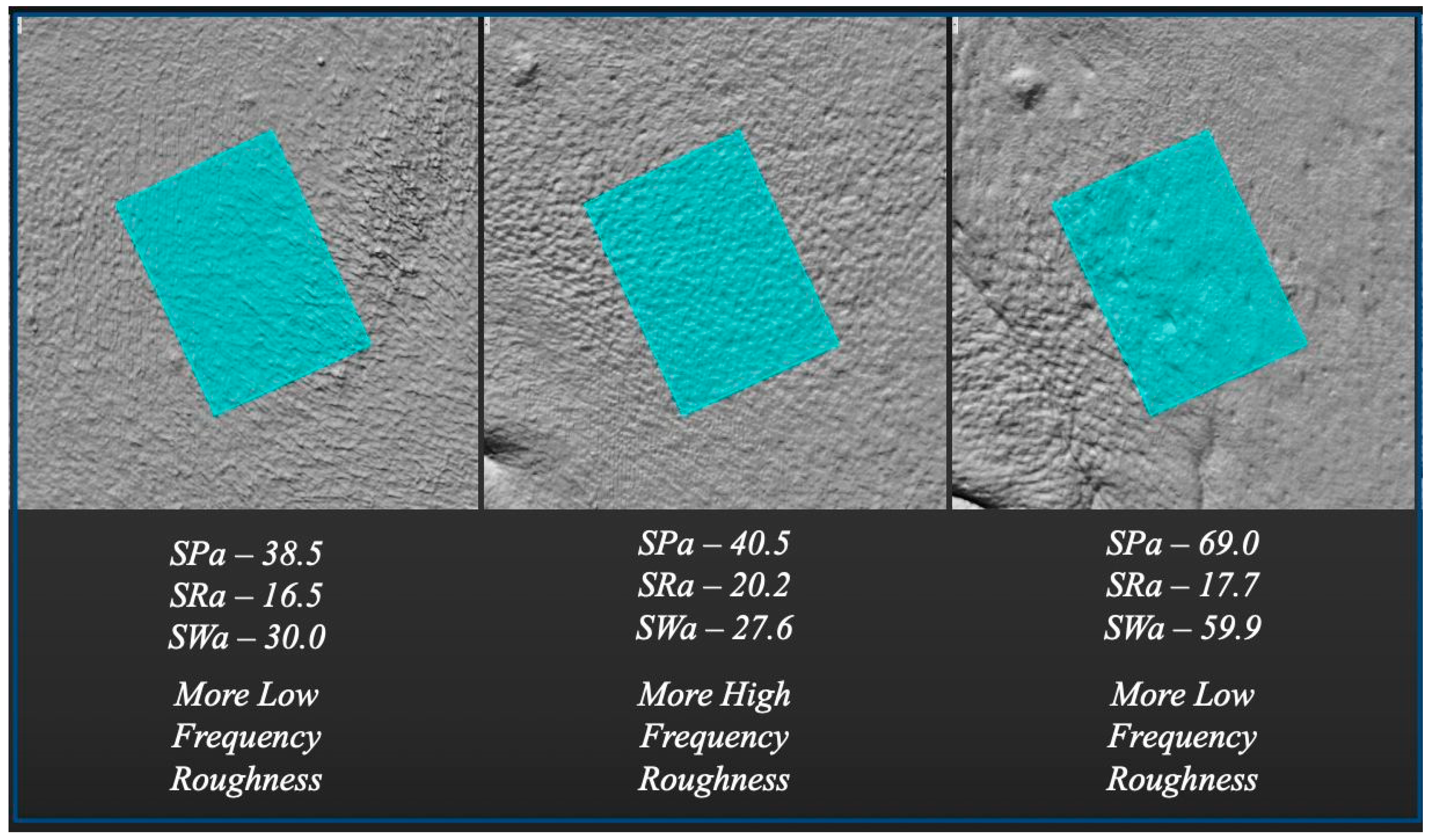 - Surface Waviness (SW): deeper structural changes such as wrinkles and scars.