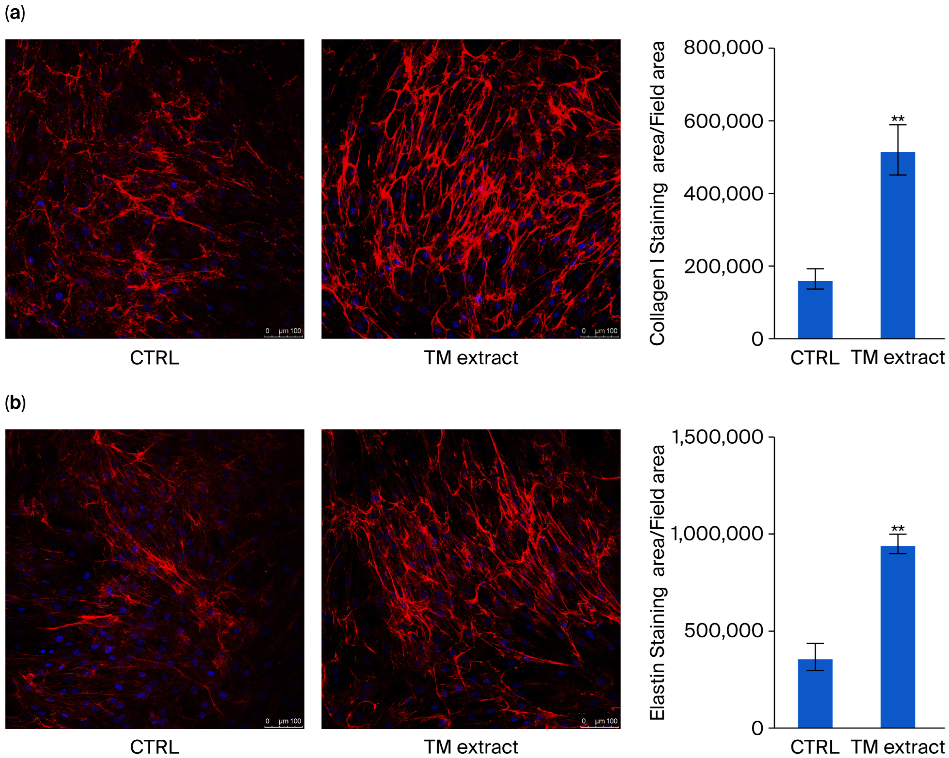 2], the production of collagen and elastin was evaluated in HDFs. When the extract was added to the cell culture (0.5%
