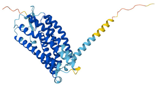 The human Platelet-Activating Factor Receptor (PAFR, UniProt ID: P25105) was selected as the receptor for performing the docking analysis, as it was also the target protein of the experimental analysis and plays a central role in platelet activation and inflammation. Its 3D structure was retrieved from the AlphaFold Protein Structure Database (PSD) as a PDB file (Figure 2).