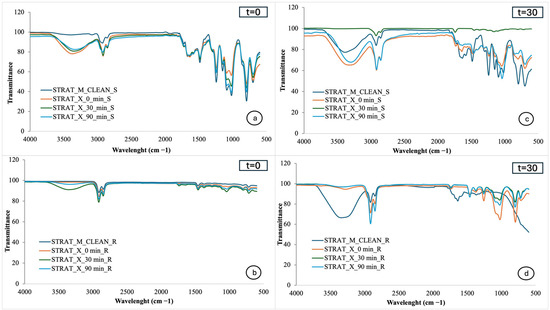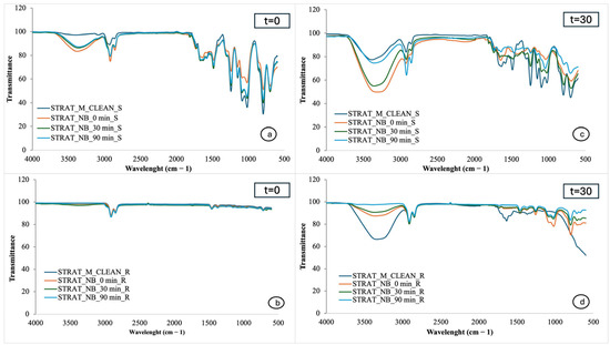 This method involves passing a beam of infrared radiation through a high refractive index crystal, while a small portion of the radiation is absorbed by the sample in contact with the crystal. The absorption of the radiation causes vibrations in the chemical bonds of the sample, creating a spectrum that is recorded and analyzed. This spectrum provides information about the chemical composition of the sample, such as bond types, functional groups, and molecular orientation. The ATR technique is particularly useful for the analysis of materials without special preparation, as it requires a minimal amount of sample and is non-destructive. In the present study, a small amount of cosmetic cream was used and applied to a Strat-M® synthetic membrane. The ATR-FTIR spectroscopy technique (Perkin Elmer Frontier ATR/FT-NIR/MIR spectrometer) was applied for the analysis in the wavenumber range 4000–600 cm−1 [23]. The Strat-M® membrane was used as an alternative model of the Stratum Corneum (SC) (Figure 1), allowing the simulation of transdermal absorption of the active ingredients. Spectroscopic analyses were performed on both the smooth and rough sides of the membranes.