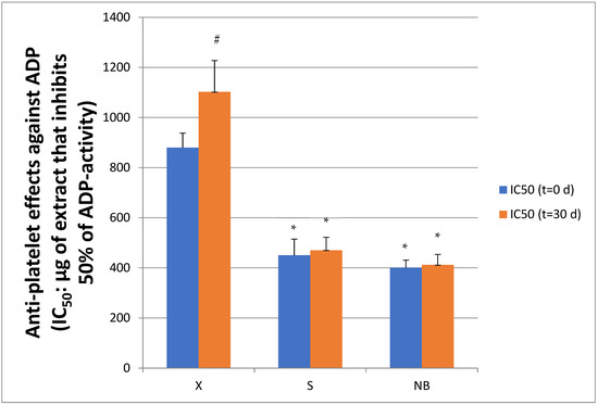 The antiplatelet and anti-inflammatory activity of the extracts was evaluated by inhibiting the activation and accumulation of human platelets. Tests were performed against the inflammatory and thrombotic mediator PAF, as well as the agonist ADP. The method was performed as previously described [4,5,6,8]. For this evaluation, an in vitro study of platelet aggregation was performed using platelet-rich plasma (PRP) and platelet-poor plasma (PPP) isolated from human blood samples, which were obtained from healthy adult volunteers at the General Hospital of Kavala (Ethics approval code ΔΠΘ/ΕHΔΕ/7690/70). The effect of the products was examined before and after incubation of platelets with different concentrations of the tested products to determine their possible inhibitory effect on platelet activation.