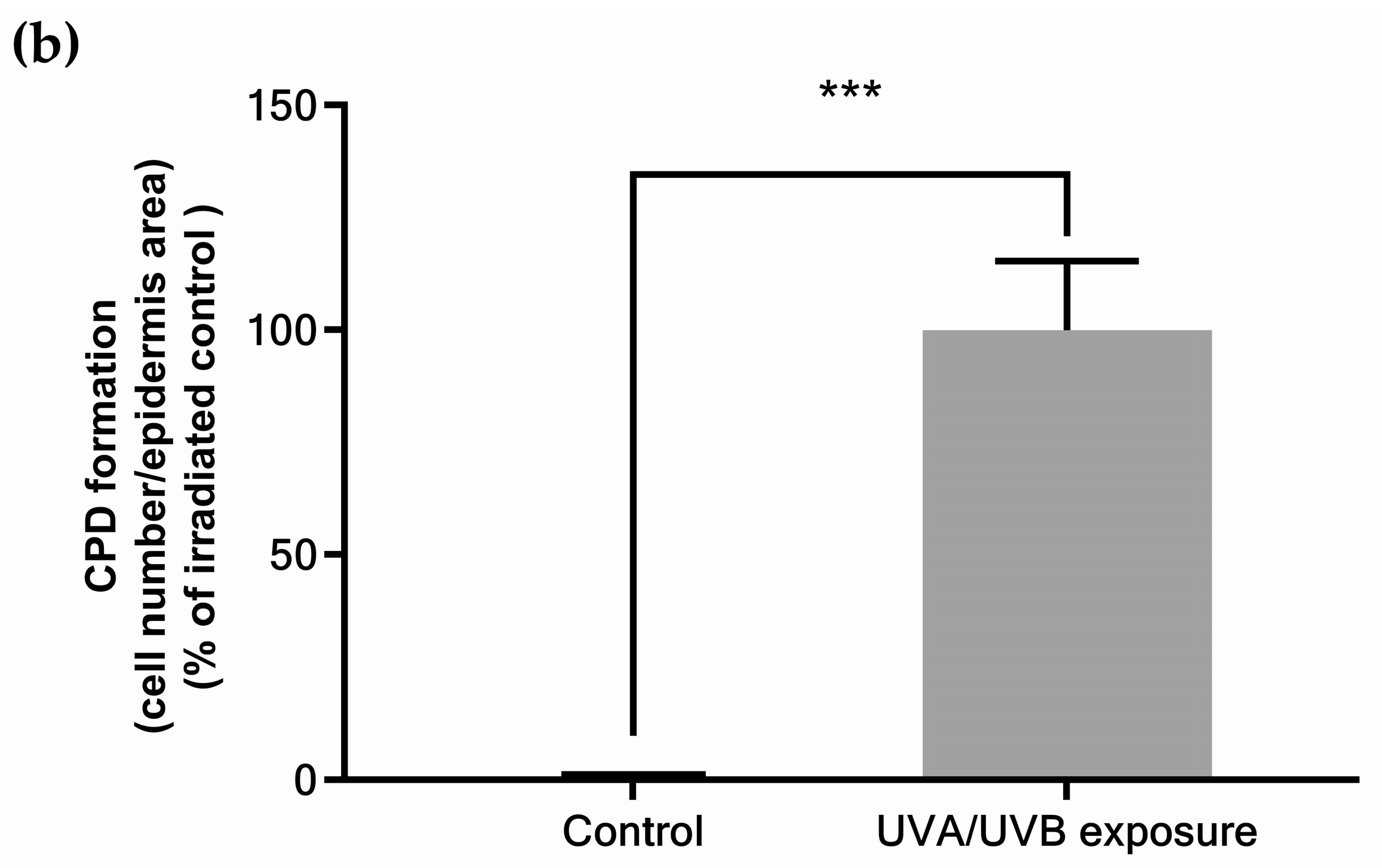 2.2. Quantification of Cyclobutane Pyrimidine Dimers (CPDs) Under Moderate Daily UV Exposure