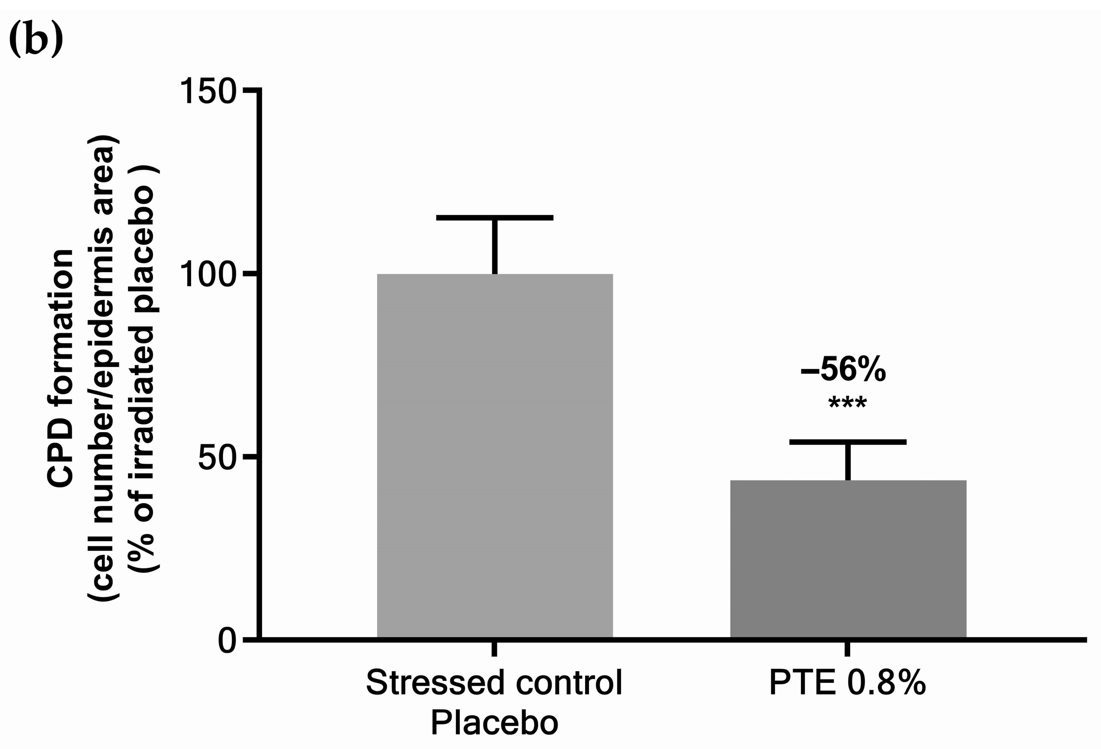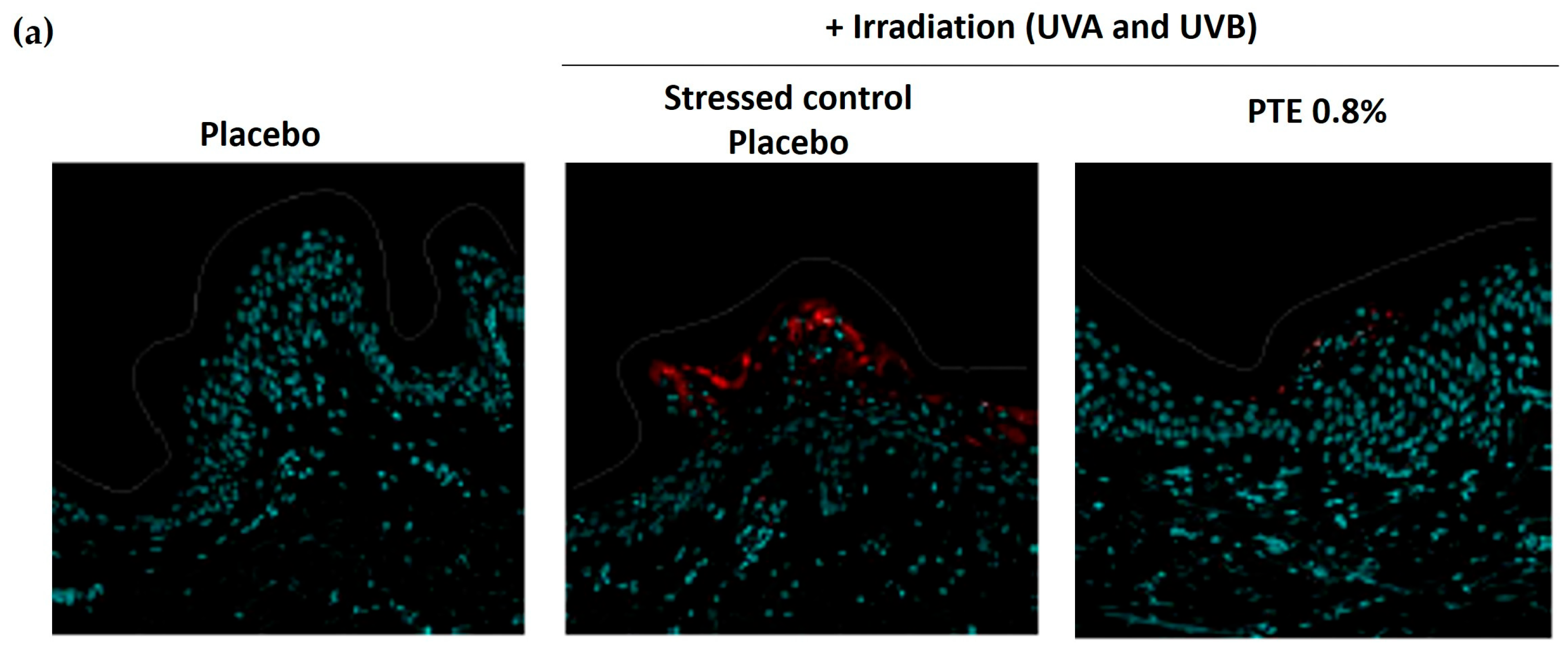 3.2. PTE Mitigates the Deleterious Effects of Sun Exposure