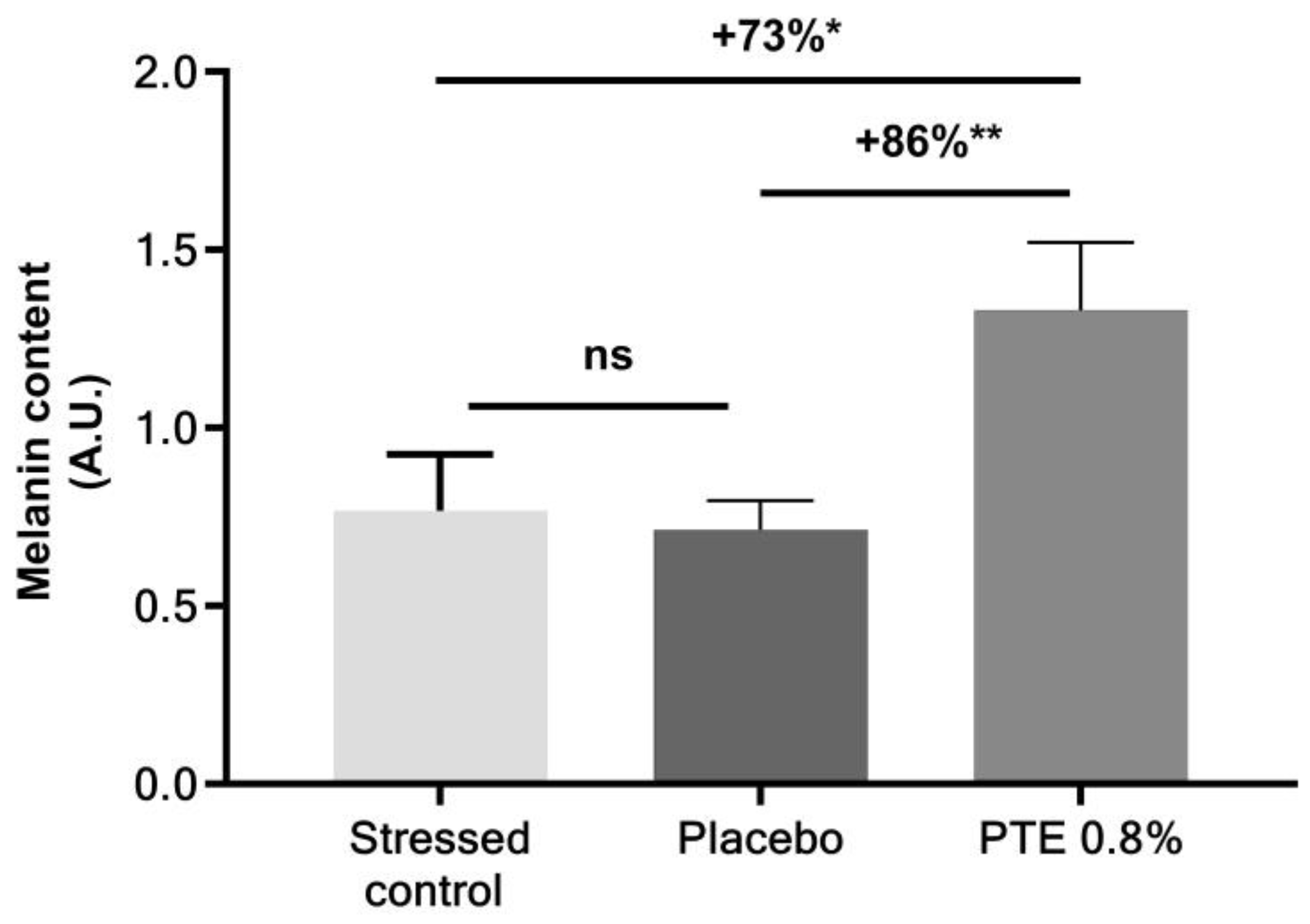 2.8. Evaluation of Skin Pigmentation on Pigmented-Reconstructed Human Epidermis Treated with PTE Under Moderate Daily UV Exposure