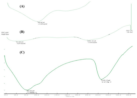 DSC study was carried out to study molecular dispersion and a change in melting temperature. Nanoparticles have a higher surface/volume ratio, which means that they can typically melt between −263.15 and −173.15 °C below the bulk material. To describe the decomposition and thermal stability of nanoparticles, DSC analysis was utilized, which measured the nanoparticles’ temperature between 50 and 600 °C at heating rate of 10 °C/min. To describe the decomposition and thermal stability of nanoparticles, DSC analysis was utilized, which measured the nanoparticles’ temperature between 50–600 °C at 10 °C/min, following the procedure outlined by Al-nehia et al. (2021) [31].