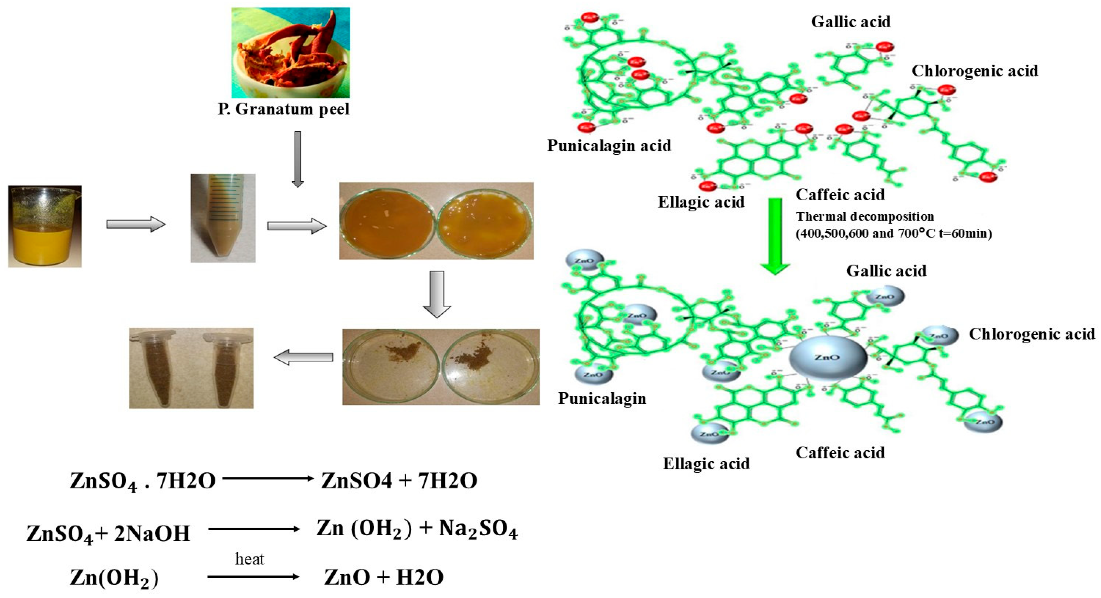 - Chamkouri, N.; Jomehzadeh, N.; Naserzadeh, N. Rapid biosynthesis and antibacterial activity of zinc oxide nanoparticles using fruit peel of Punica granatum L. as cellulose. Curr. Res. Green Sustain. Chem. 2022, 6, 100366. [Google Scholar] [CrossRef]