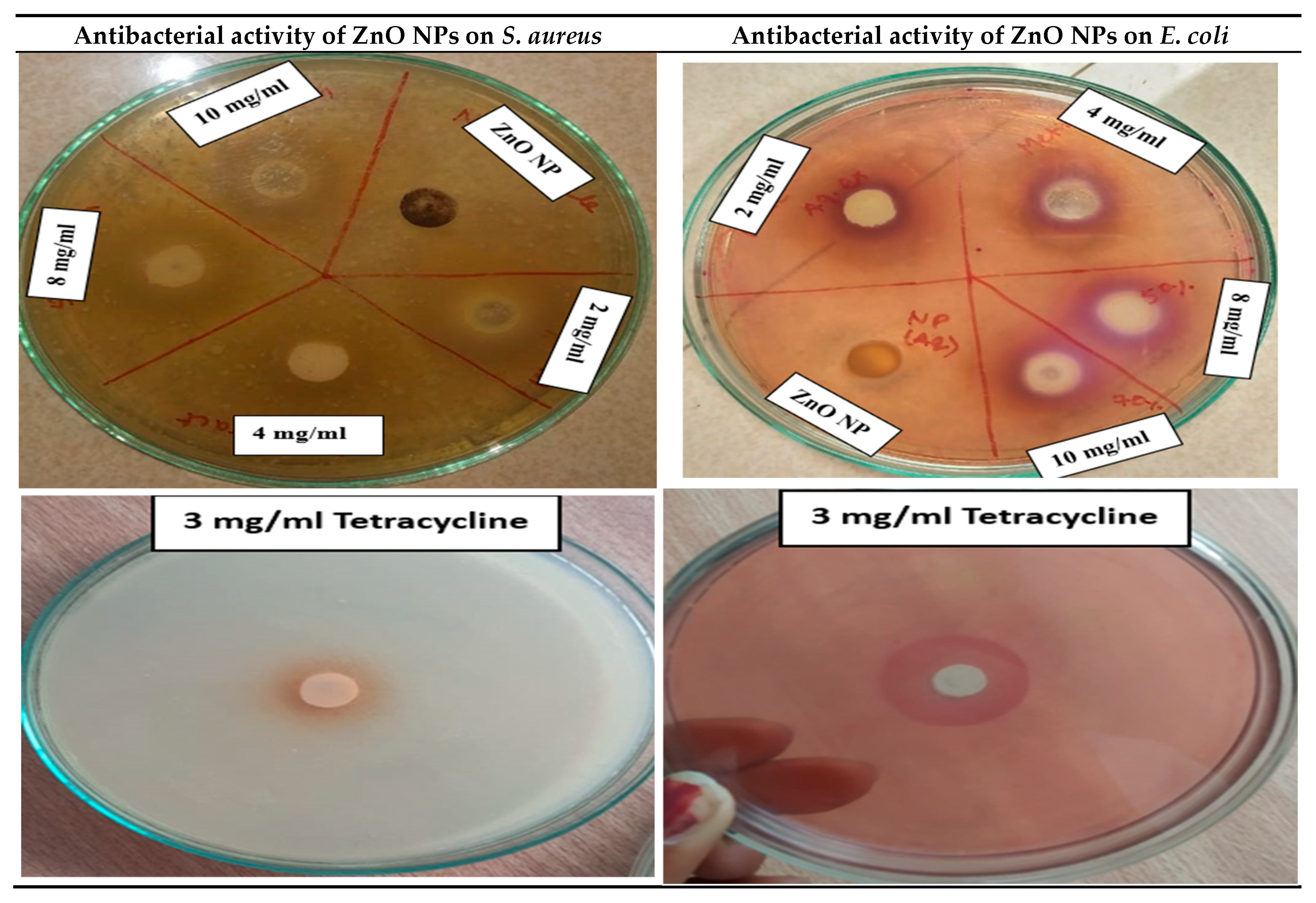 3.3.7. Antibacterial Activity of ZnO Nanoparticles
