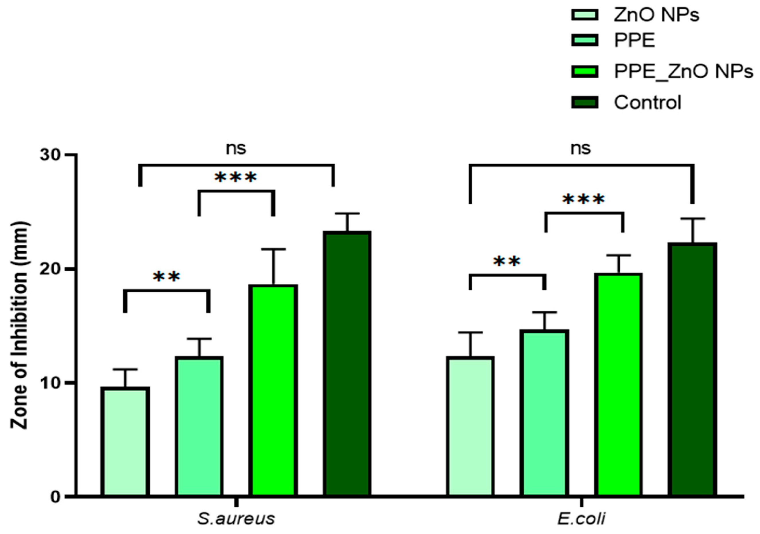 - ZnO (no-PPE control) synthesized by the same chemical route but without plant extract (process control prepared in Section 2.4), and