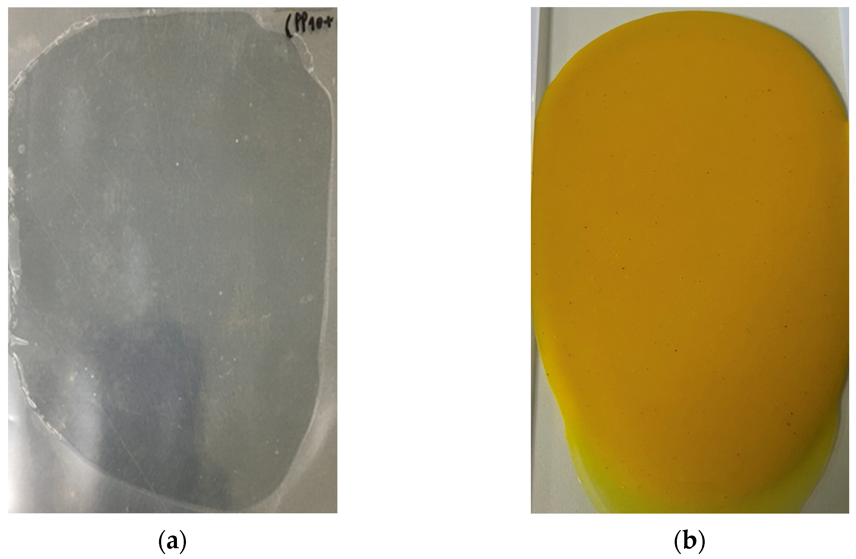 - Ballesteros-Mártinez, L.; Pérez, C.E.; Andrade, R. Effect of glycerol and sorbitol concentrations on mechanical, optical, and barrier properties of sweet potato starch film. NFS J. 2020, 20, 1–9. [Google Scholar] [CrossRef]