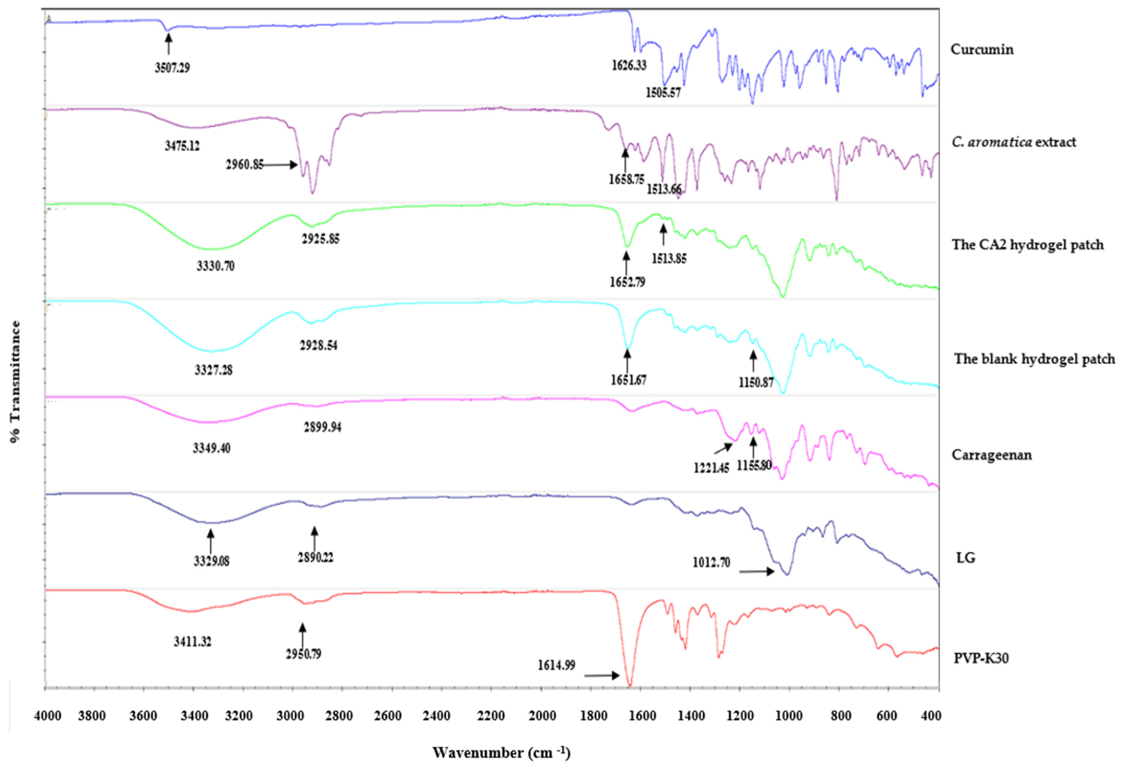 | Formulations | Carrageenan | LG and PVP K-30 | Glycerin | Curcuma aromatica Extract |