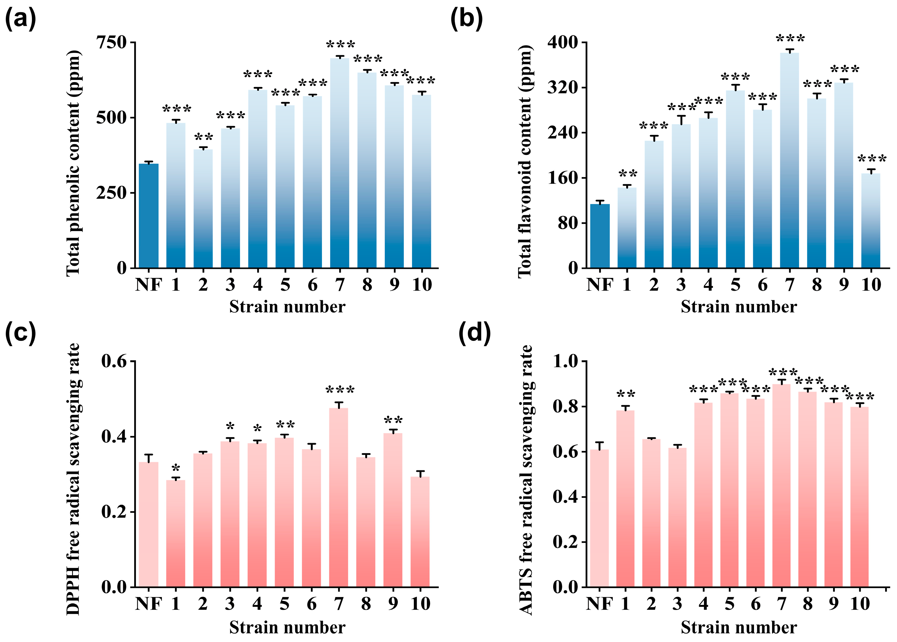 - Liu, S.; He, Y.; He, W.; Song, X.; Peng, Y.; Hu, X.; Bian, S.; Li, Y.; Nie, S.; Yin, J.; et al. Exploring the biogenic transformation mechanism of polyphenols by Lactobacillus plantarum NCU137 fermentation and its enhancement of antioxidant properties in wolfberry juice. J. Agric. Food Chem. 2024, 72, 12752–12761. [Google Scholar] [CrossRef]