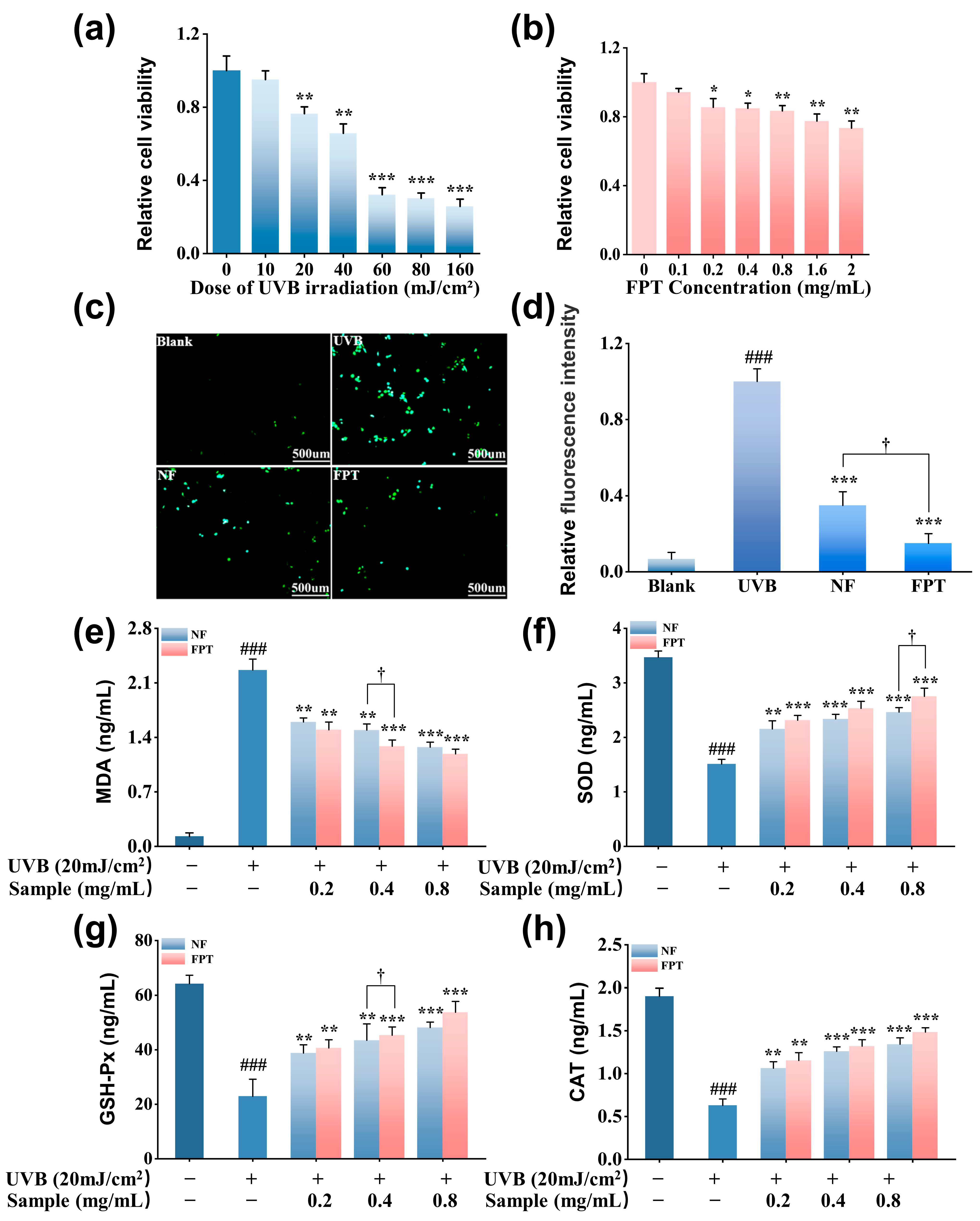 3.2. Antioxidant Effect of FPT on HaCat Cells in UVB-Induced Oxidative Stress