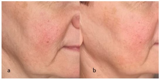 Figure 1. Photographs of the cheek skin condition before the treatment series (a) and after the treatment (b).
