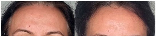 Figure 2. Photographs of the forehead skin condition before the treatment series (a) and after the treatment (b).
