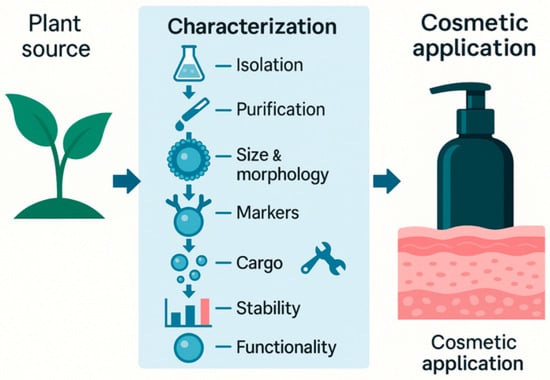 Given these challenges, there is an urgent need to establish a baseline of minimal yet rigorous characterization guidelines for PDEVs and other non-animal-derived EVs intended for cosmetic and regenerative applications. Such guidelines must balance practicality with scientific integrity, ensuring that both producers and users have access to reliable, validated, and reproducible materials. Only through such coordinated efforts can the full potential of these natural nanocarriers be safely and effectively harnessed. Here (Figure 1), a set of scientifically grounded minimal characterization guidelines for the use of non-animal-derived EVs in cosmetic and regenerative products is proposed. These guidelines are intended to serve both producers, who are responsible for the isolation, processing, and labeling of EVs, and end users, such as cosmetic formulators, dermatologists, and product developers, who rely on reliable materials and data for effective application. The guidelines are intended to foster transparency, encourage regulatory harmonization, and support the scientific credibility of cosmetic products using natural vesicular ingredients.