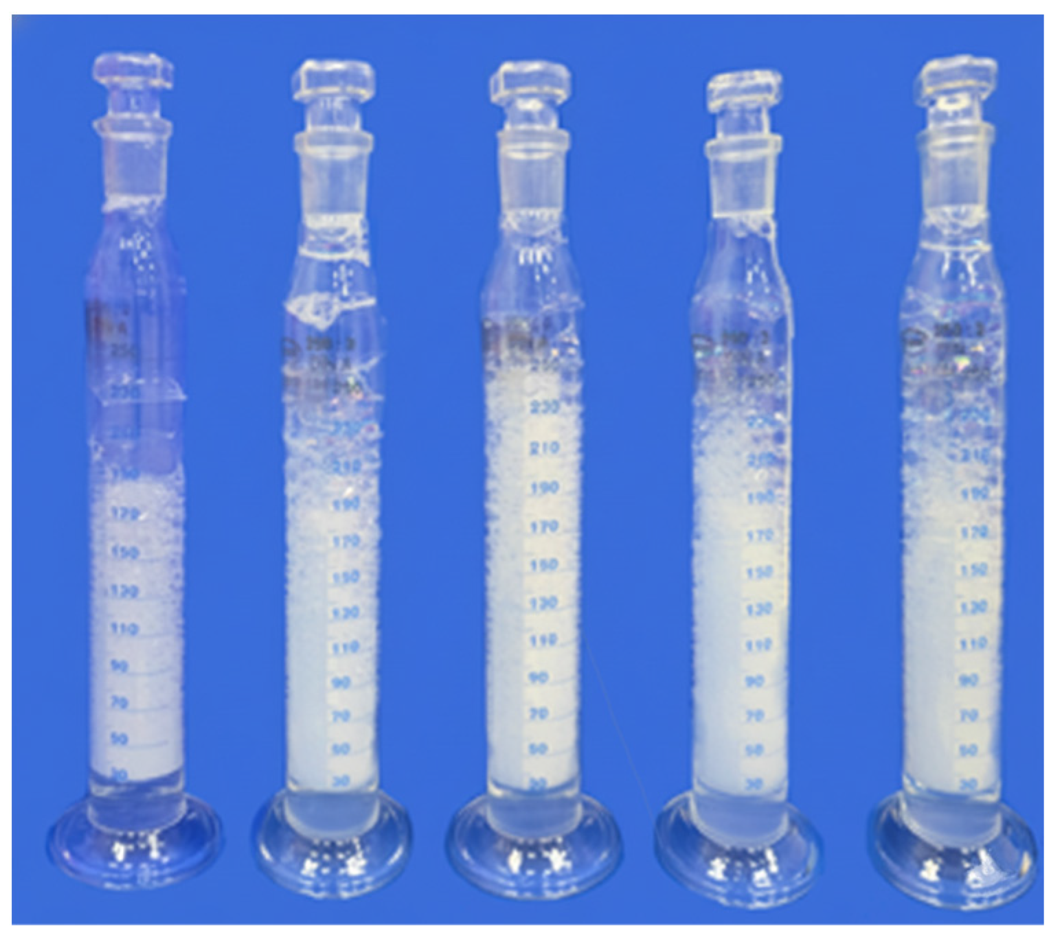Procedure: after pouring a known volume of surfactant and Levan solution into tap water in a measuring cylinder, (see