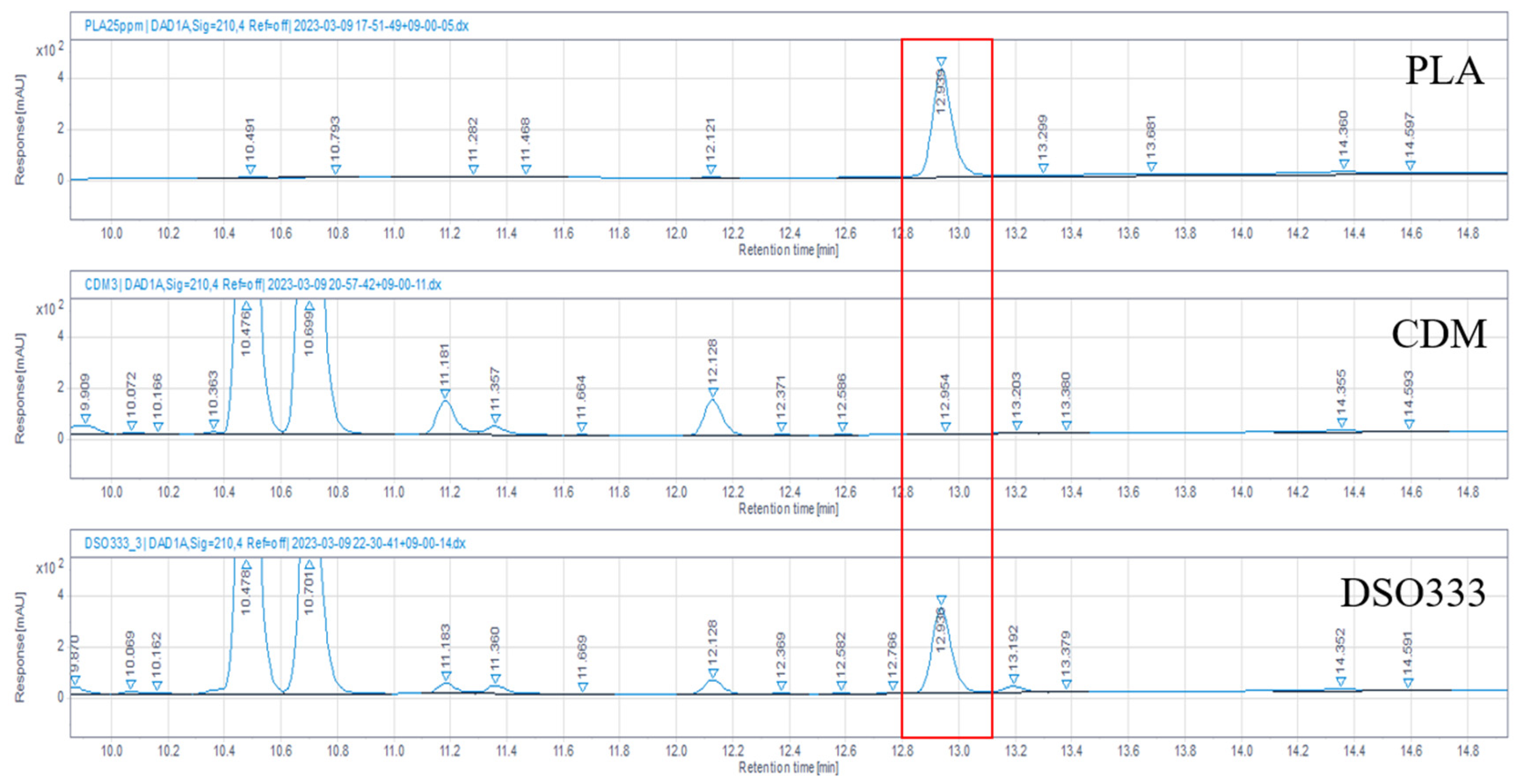 3.1. HPLC Analysis of PLA