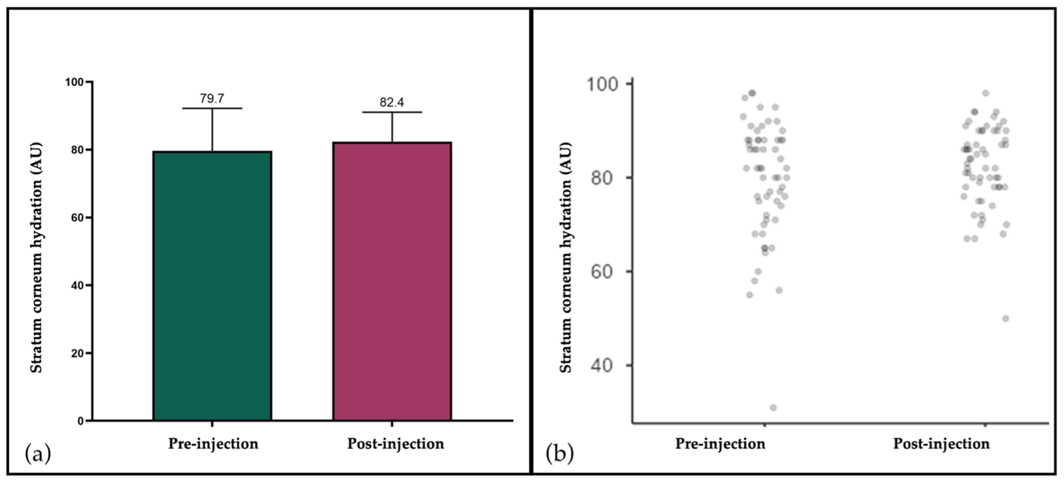 - Scarano, A.; Qorri, E.; Sbarbati, A.; Gehrke, S.A.; Marchetti, M.; Desiderio, V.; Amuso, D.; Tari, S. Mesotherapy with hyaluronic acid solutions enriched by amino acids in the neck area: Open-label uncontrolled, monocentric study. J. Cosmet. Laser Ther. 2025, 27, 121–126. [Google Scholar] [CrossRef]