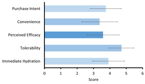 Participant feedback indicated high satisfaction, especially for tolerability and immediate hydration (Figure 6). The evaluation focused on five key dimensions, which were purchase intent, convenience, perceived efficacy, tolerability, and immediate hydration. These metrics provided insight into the practical acceptability and perceived benefits of the formulation beyond objective skin measurements. The highest average rating was observed for tolerability, indicating that participants found the mask gentle, non-irritating, and suitable for repeated application over the study period. Perceived efficacy also received a strong rating, reflecting user recognition of visible skin improvements, which corroborated the clinical improvements in melanin index and moisture levels. Participants also rated immediate hydration favorably, with many users reporting a noticeable increase in skin moisture shortly after application. This aligned with the mask’s formulation, which includes hydrating agents such as HA, panthenol, and niacinamide, as well as the occlusive nature of the dissolving film that promotes moisture retention.