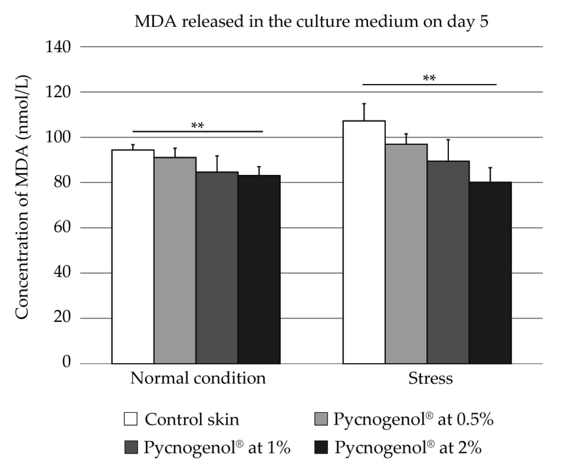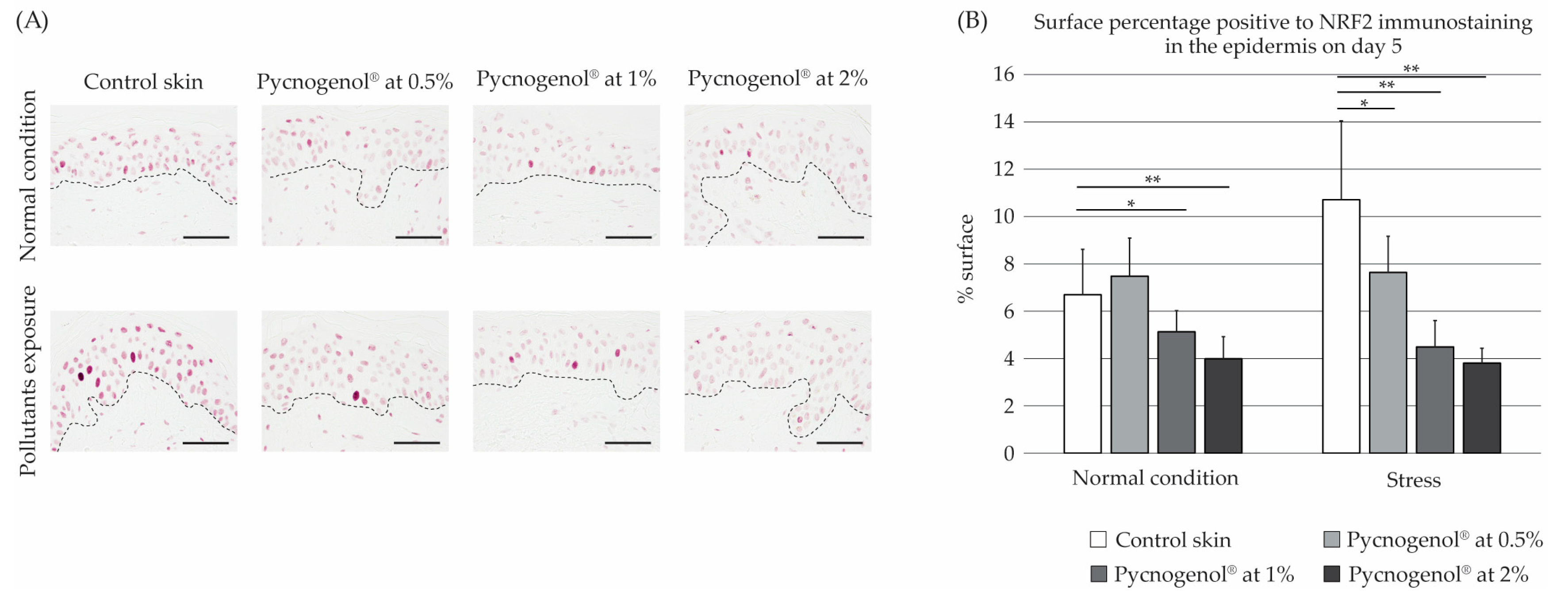 | P3 + Stress | Pycnogenol® at 2% + Pollutant mixture | 4 |
