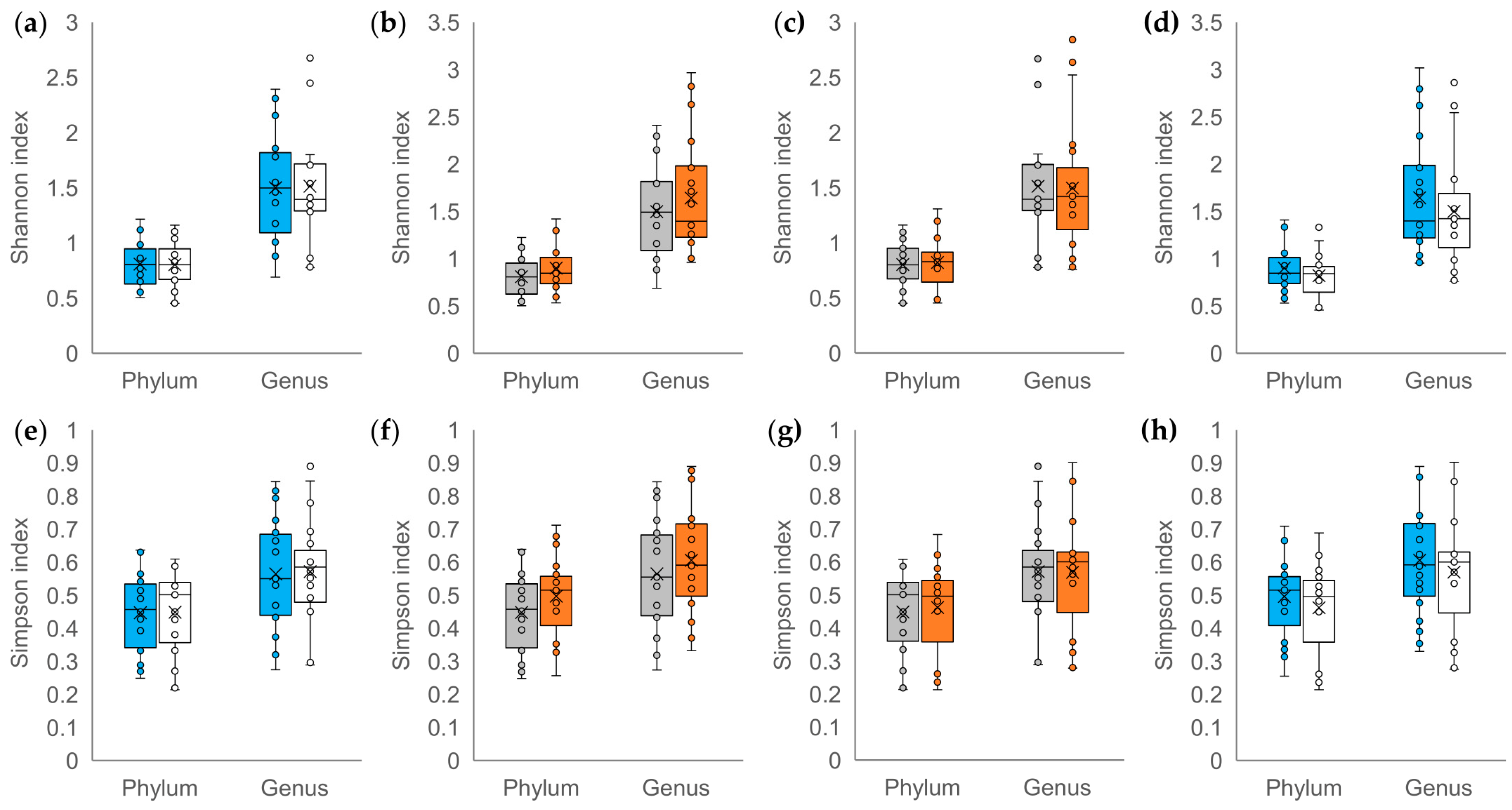 48]. Features without taxa designation were ascribed to the corresponding unclassified group. A secondary analysis of the results was performed using MicrobiomeAnalyst Software [