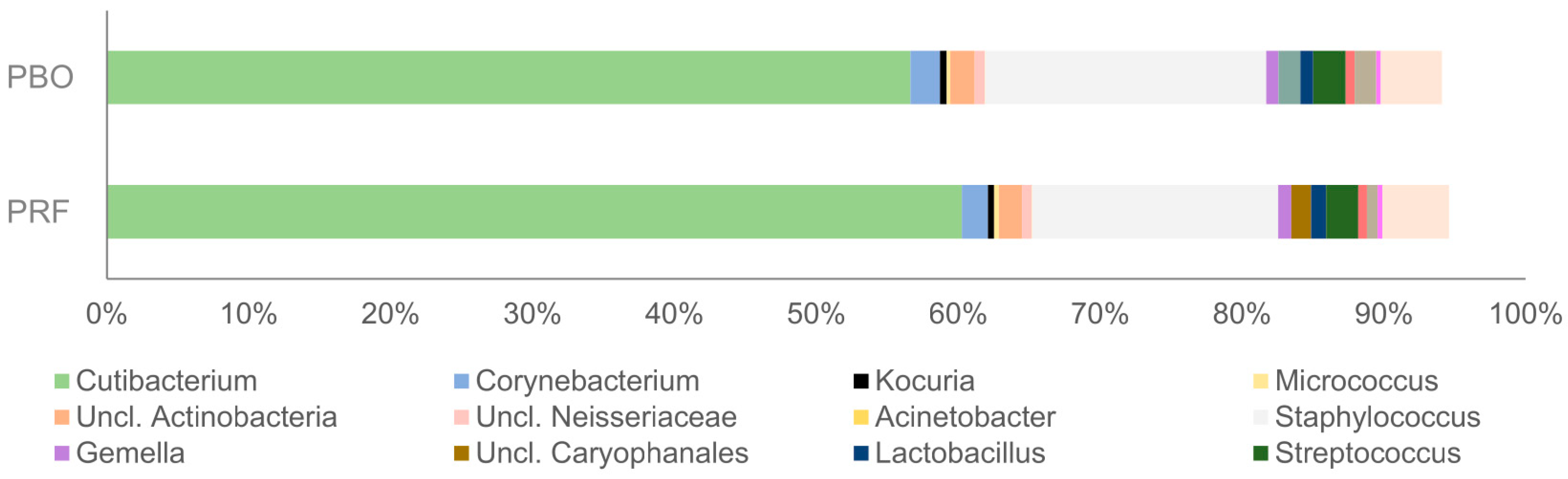 The microbiome profiling revealed no significant alterations in alpha or beta diversity or in the relative abundance of dominant genera over the 28-day period. This indicates that the PRF formulation preserves the skin’s ecological balance. Genera such as