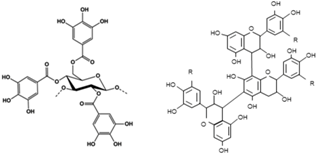 - Tannins are phenolic compounds of molecular weight between 500 and 3000 D and may be subdivided into: hydrolysable, esters of gallic acid (gallo- and ellagitannins), condensed tannins (also known as proanthocyanidins), polymers of polyhydroxyflavan-3-ol monomers, and phlorotannins, found in brown seaweeds.