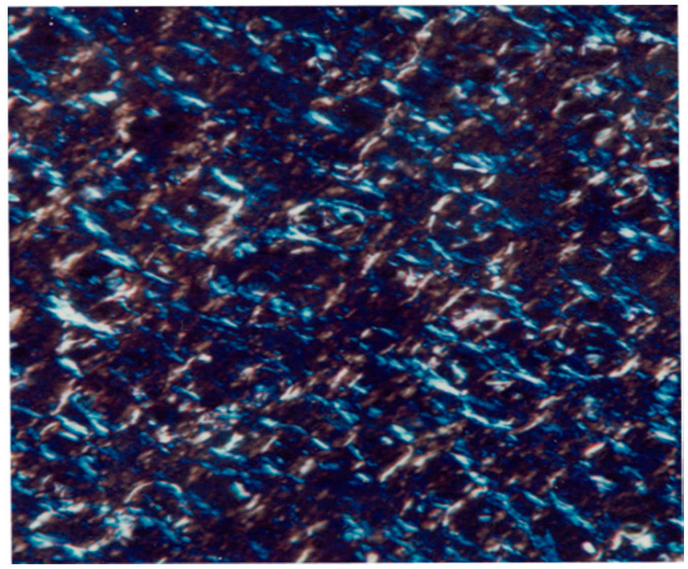 The emulsifier is hydrodispersible: it can form liquid crystal lamellar structures without the help of other co-emulsifiers, regardless of the chemical structure and polarity of the substances present in the internal phase of the emulsion. Under a microscope with polarized light their liquid crystal structure is quiet clear, as the following photograph, taken at ×250, demonstrates (