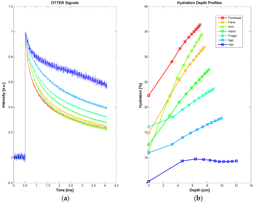 - Xiao, P.; Imhof, R.E. Opto-thermal measurement of water distribution within the stratum corneum. In Skin Bioengineering Techniques and Applications in Dermatology and Cosmetology; Karger: Basel, Switzerland, 1998; Volume 26, pp. 48–60. [Google Scholar]