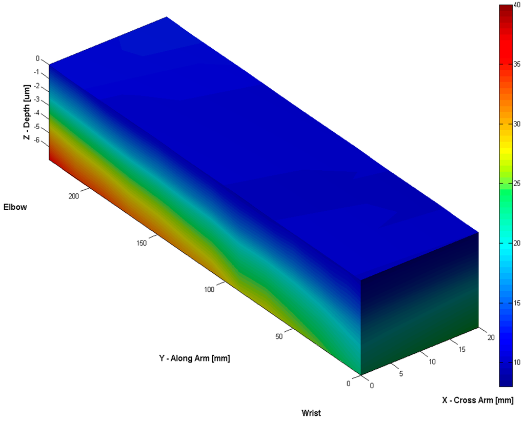 The 3D water concentration depth profiles along the volar forearm.