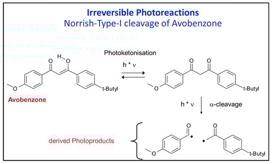 - Afonso, S.; Horita, K.; e Silva, J.S.; Almeida, I.F.; Amaral, M.H.; Lobao, P.A.; Lobo, J.S. Photodegradation of avobenzone: Stabilization effect of antioxidants. J. Photochem. Photobiol. B: Biol. 2014, 140, 36–40. [Google Scholar] [CrossRef] [PubMed]