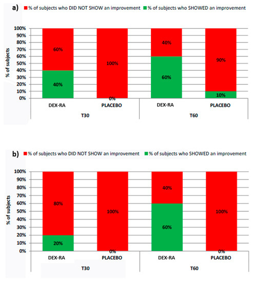 As it is possible to note, in both cases the 60% of the subjects have shown an improvement after 60 days of treatment with formulation containing DEX-RA.